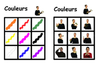 | Jeu de Loto: Les couleursNiveau: PréscolaireObjectif: associer le signe et la couleur.Matériel:1 planche de jeu « couleurs » 1 planche de jeu « signes » 9 cartes à découper « signes » 9 cartes à découper « couleurs » |