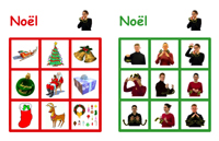 | Jeu de Loto: NoëlNiveau: PréscolaireObjectif: associer le signe et l’objet.Matériel:1 planche de jeu « objets de Noël » 1 planche de jeu « signes » 9 cartes à découper « signes » 9 cartes à découper « objets de Noël » |